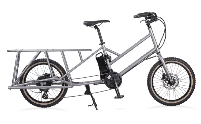 スポーツ系のE-カーゴバイクですが、乗り降りしやすい変形スタッガードフレームを採用。男女ともに乗りやすく。