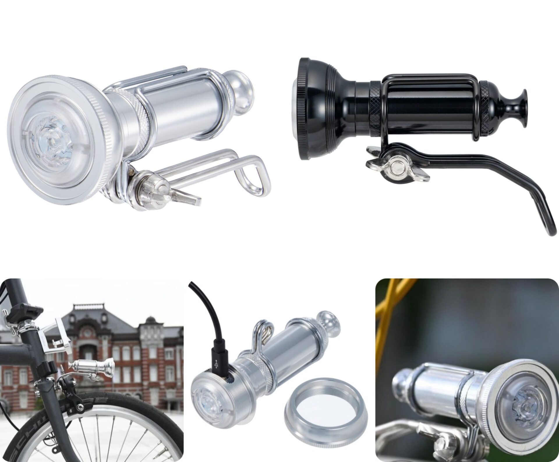クラシックなランドナーやクロモリバイクに溶け込む唯一無二のデザイン。最大300ルーメンの明るさとUSB Type-C充電対応で、見た目だけでなく実用性も兼ね備えています。