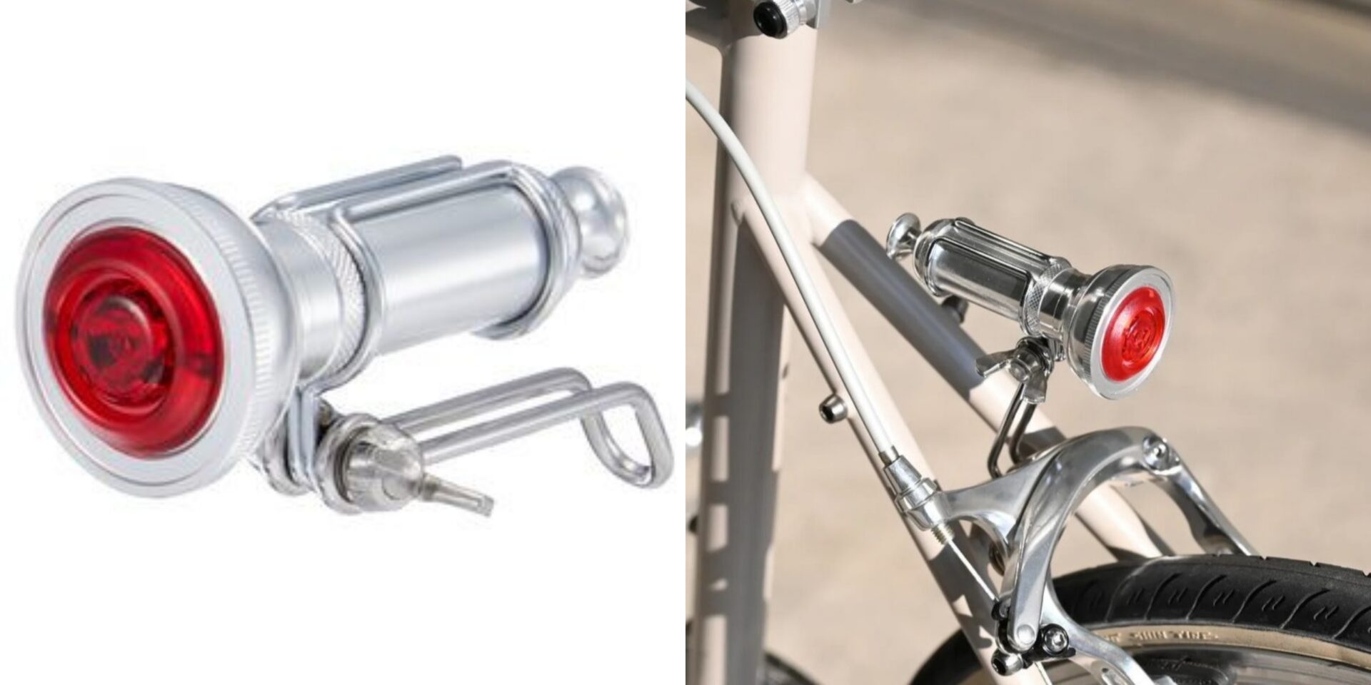 懐かしさと上質さを両立した、スチールボディの電池式リアライト。