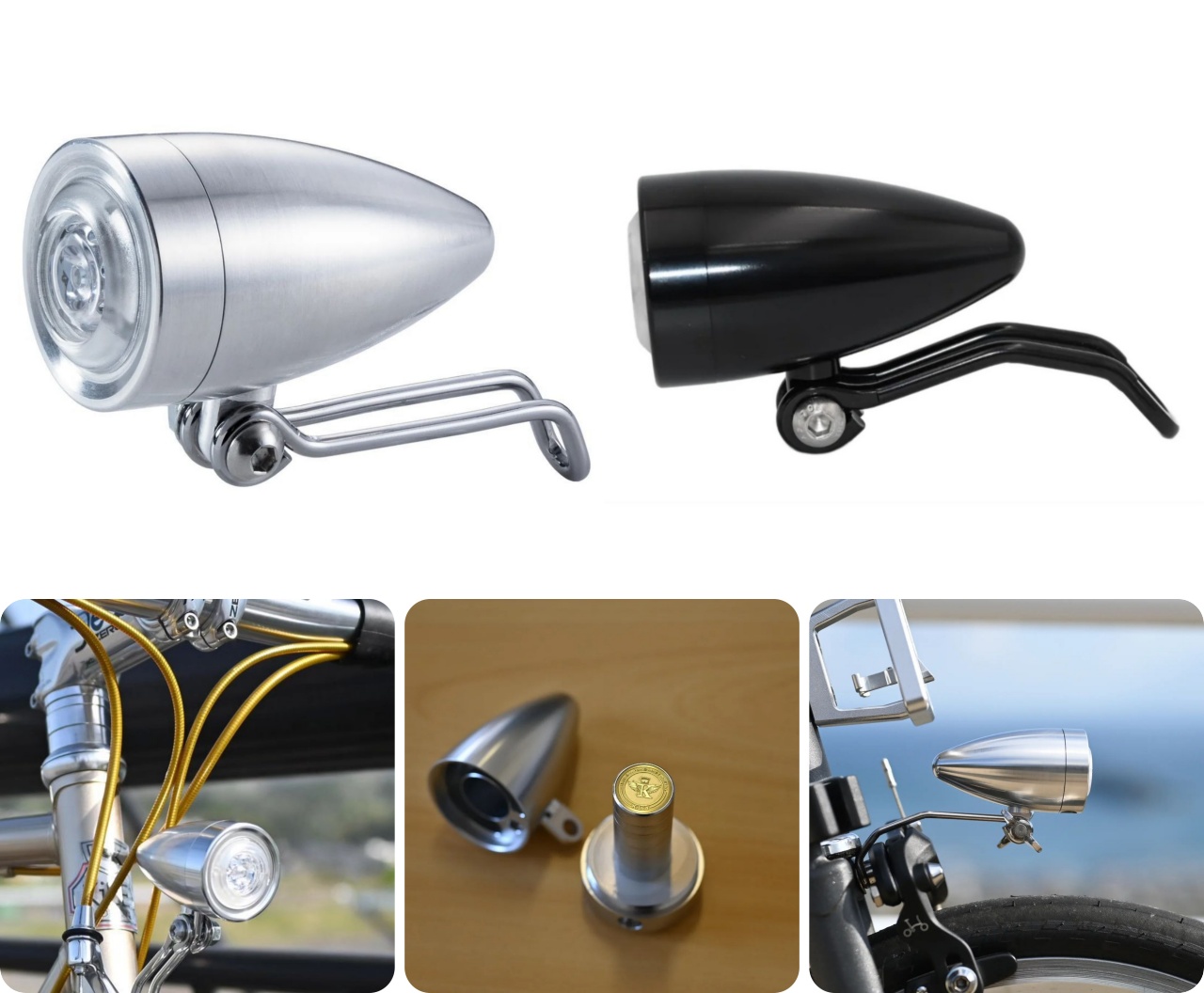 クロモリフレームのシティバイク、ミニベロ、クルーザー、ランドナーのアクセントに最適なライトです。