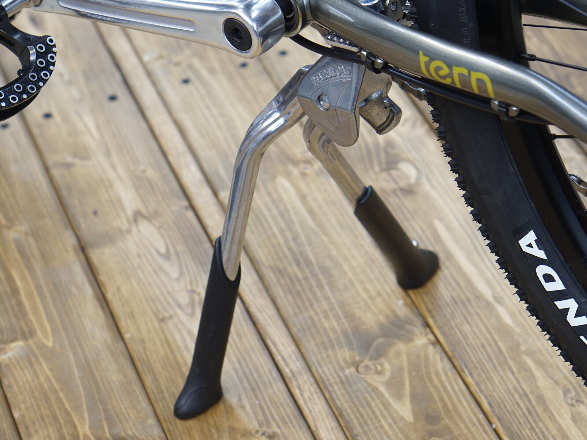 用意したのは駐輪時、車体が斜めではなくまっすぐに自立する「Wレッグ」タイプのスタンド。
