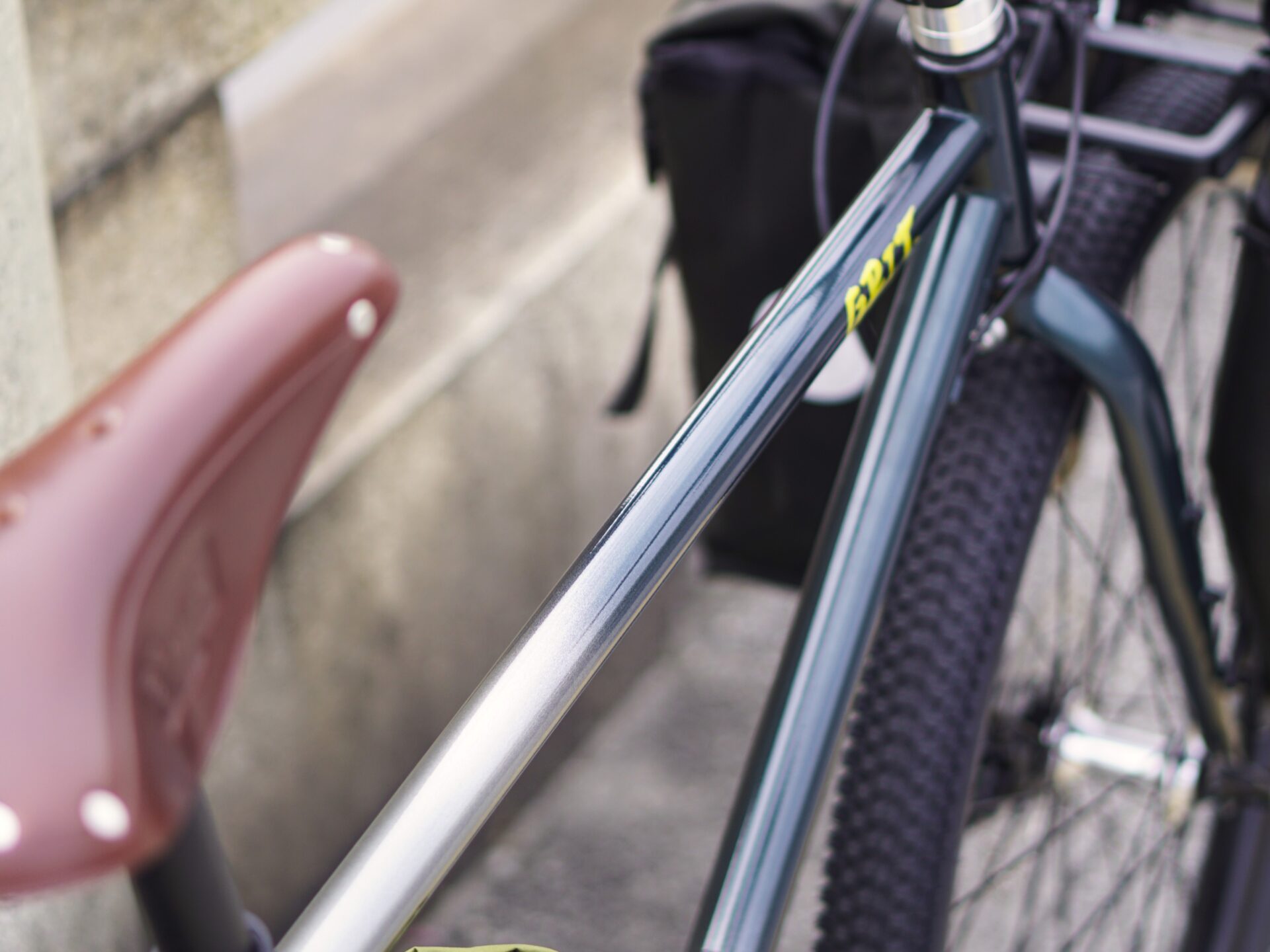 一見シンプルだけど、乗れば乗るほど味が出る。金属のぬくもりを感じるクロモリフレーム。