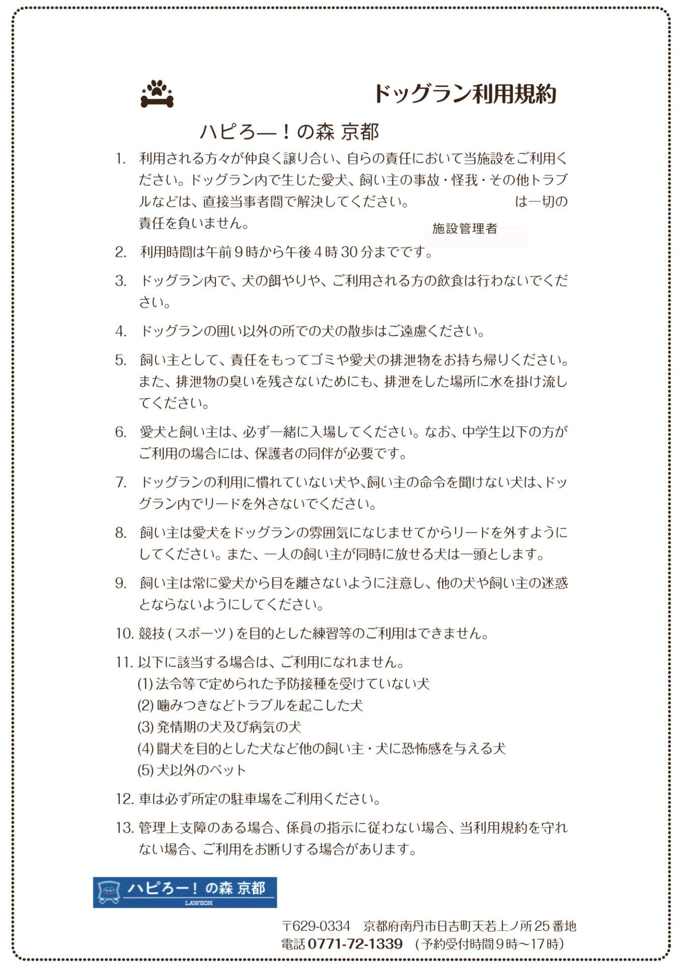 【ドッグランに関するお願い/ハピろー!の森 京都公式サイト】