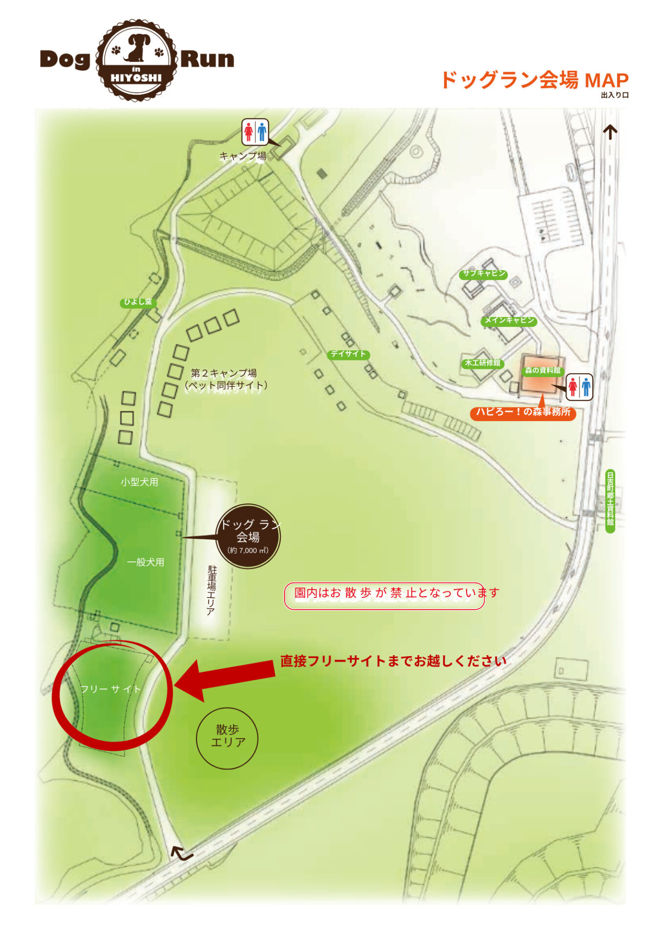 試乗会当日はドッグラン会場フリーサイトまで直接お越しください。