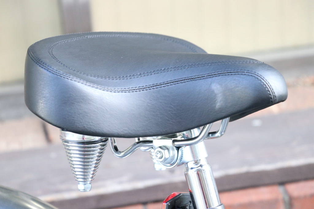 サドルには、ビーチクルーザー御用達のクルーザースプリングサドル。幅広い面積を確保し、お尻をしっかりとキャッチ!