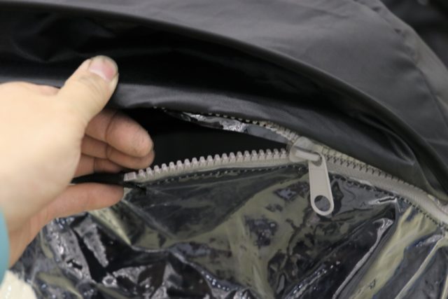 お子様を乗せる時は上部の横側にファスナーが取り付けられており、