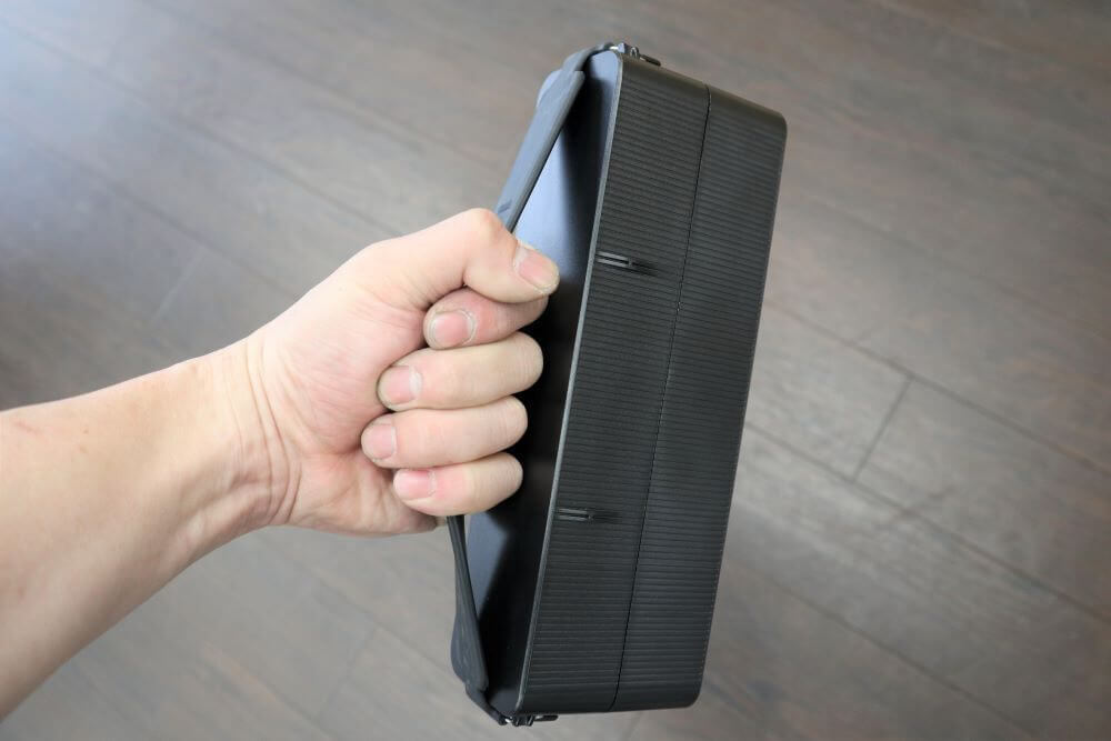 サイズもコンパクトで、わずか1.25㎏ペットボトル並みの大きさ。持ち手付きのデザインで携帯にするにも便利なのが良いですね!◎