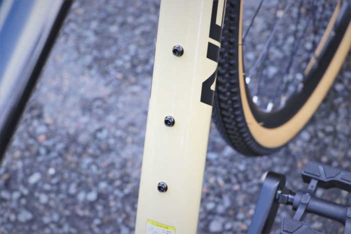 ボトルゲージ取り付けはもちろんフレームバッグにポーターラック、キャリアの取り付けが多数可能となり積載能力はかなり優秀!