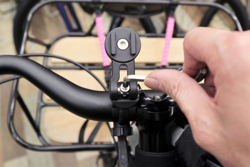 自分の取り付けたい自転車のハンドルやステムにこんな感じでユニバーサルバイクマウントを巻き付け取り付けます。