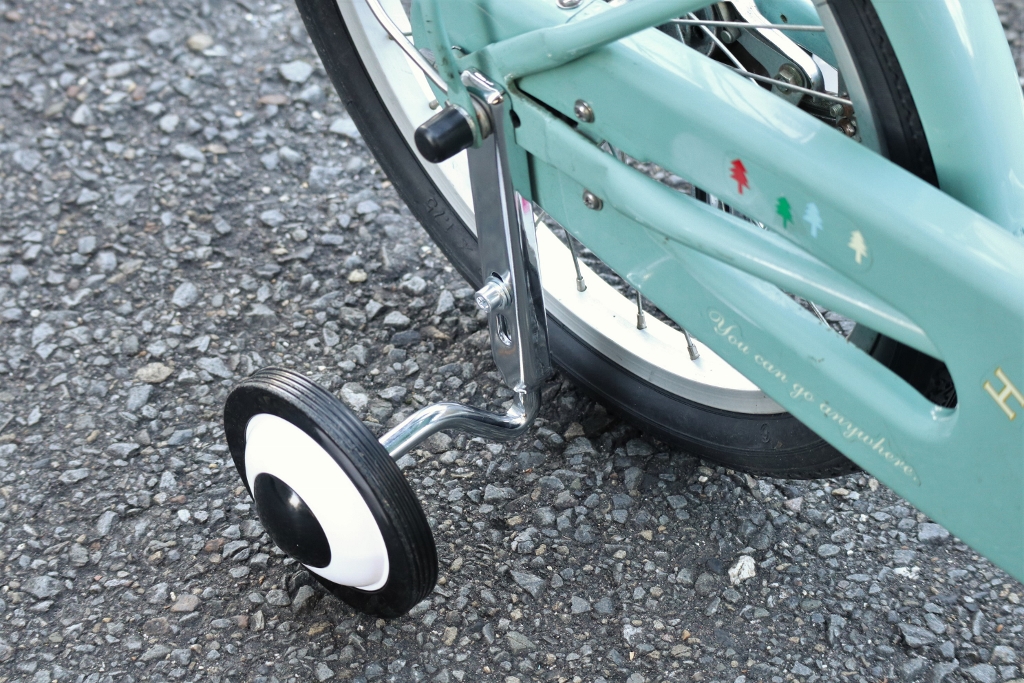 18インチということで、もちろん補助輪付き。自転車を乗る練習にピッタリですね~。慣れてきたら外すこともできますし、代わりにスタンドを取り付けることも可能。(別売り)