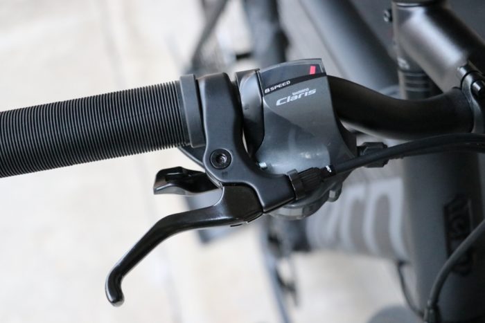変速機はリア側のみ。エントリーグレードのロード用変速機シマノクラリスをチョイスした8速仕様。