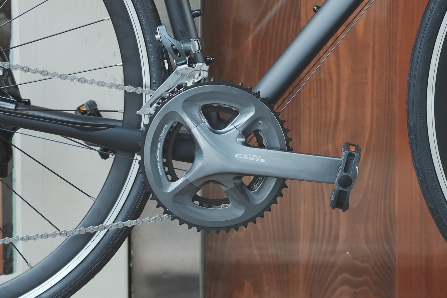 コンポーネントにはSHIMANO Claris(2×8速)を採用。