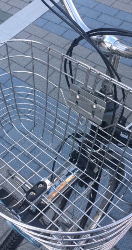 かごは大きな荷物もっすっぽり入る大型かご。長く使ってもずっときれいなステンレス製のものに交換しています!