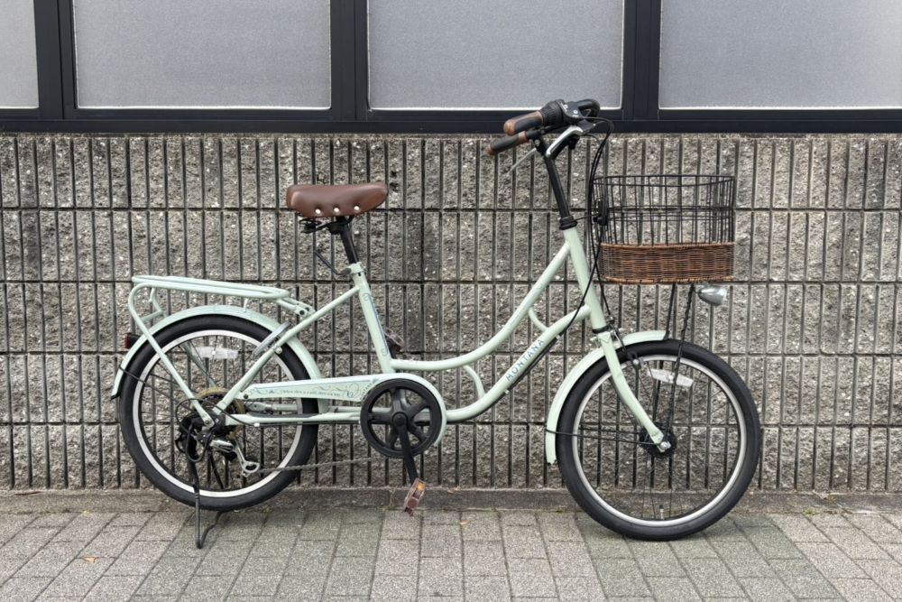 コンパクトな見た目でかわいい小径自転車。一本フレームでU形にカーブしており、小ささも相まって乗り降りしやすい自転車です。