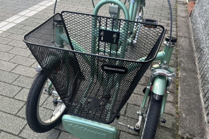 ミンナは三輪自転車のためスタンドがついていません。止めている場所によっては勝手に転がって行ってしまいます。
