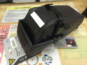 防水機能が付いて4000円弱は安いです。取り外しも凄く簡単。ここに着替え1枚とチューブ、携帯工具、タイヤレバー、その他細々したものを押し込んでました。