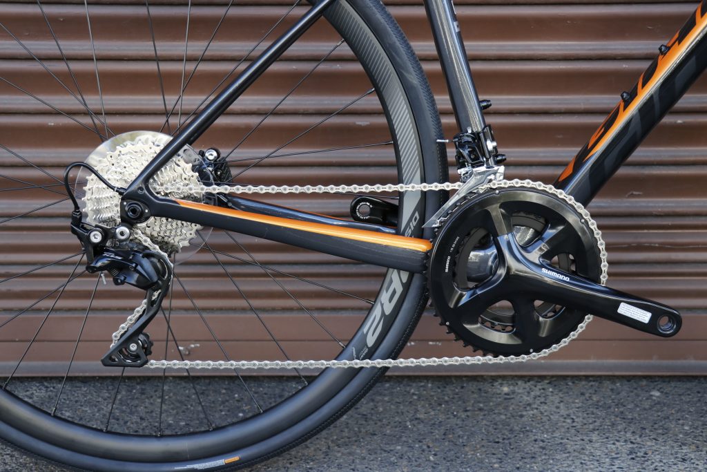 メインコンポーネントはR7000系Shimano 105を採用。クランクのみShimanoのグループ外モデルとなっています。