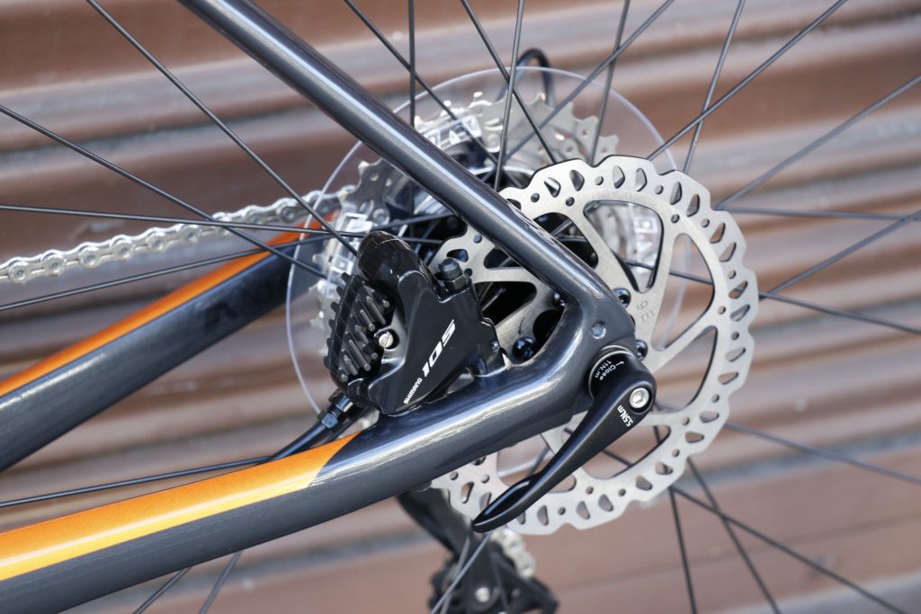 そして何よりおすすめしたい油圧ディスクブレーキ。アップダウンを含むロングライドでは特に、ブレーキングによう握力消耗、腕と手のひらの疲れがガツンときます。