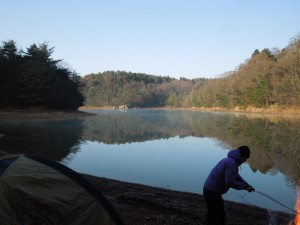 3月後半とはいえ山中にある夜の池はかなり寒い!