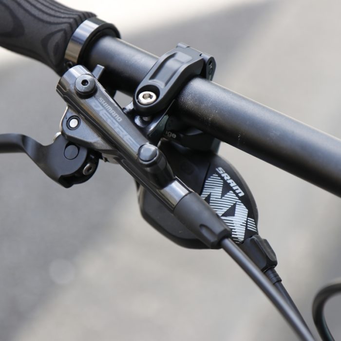 ●整備の段階でブレーキはSHIMANOへとカスタム。フロントは制動力、コントロール性に優れる4ポッドのブレーキキャリパーが装備されています。