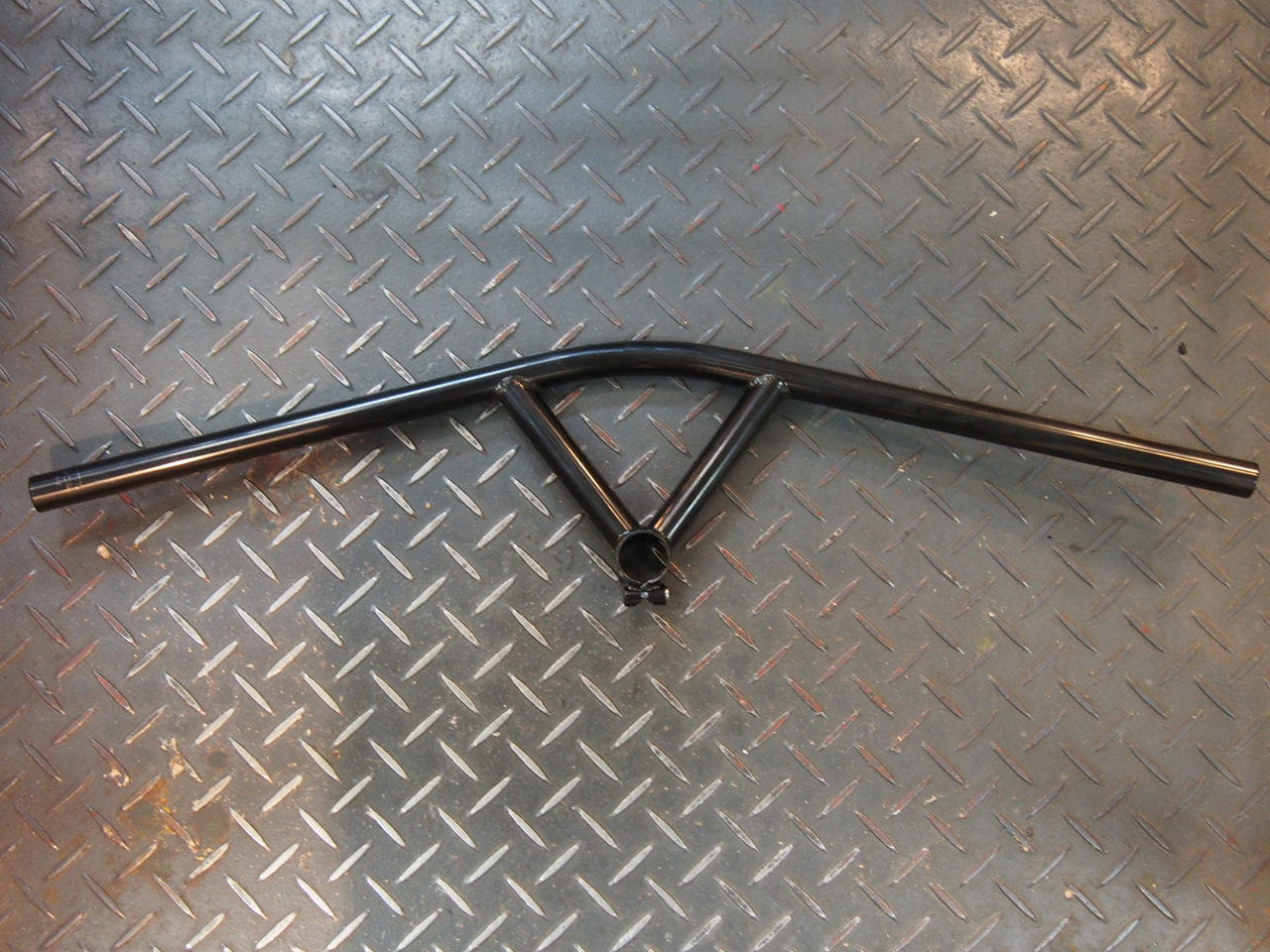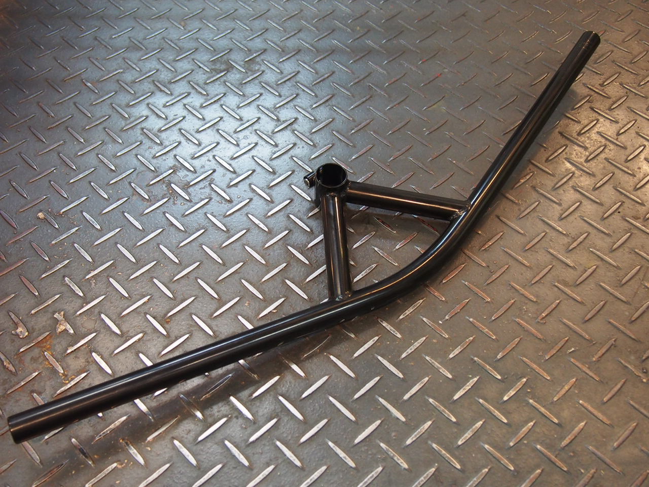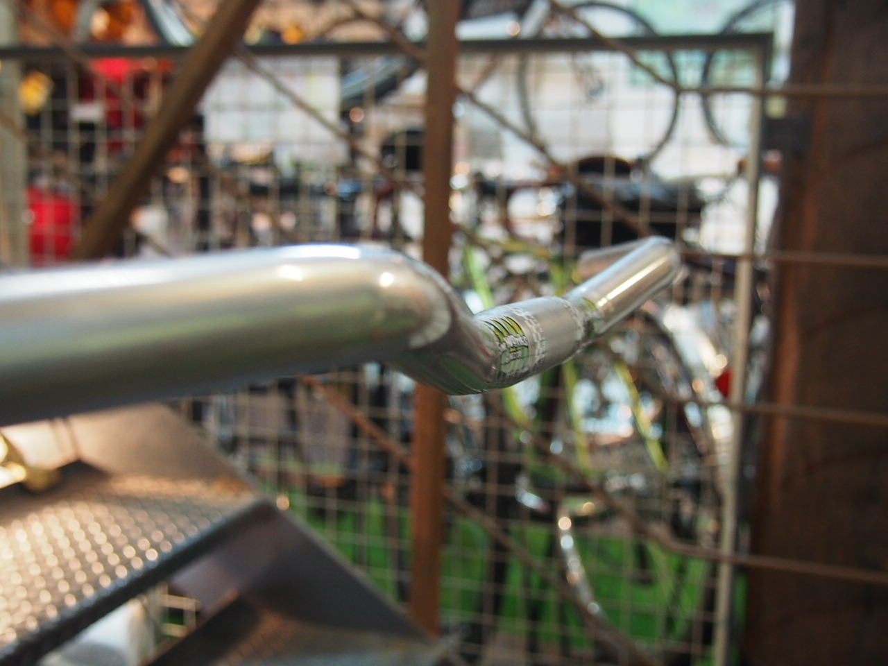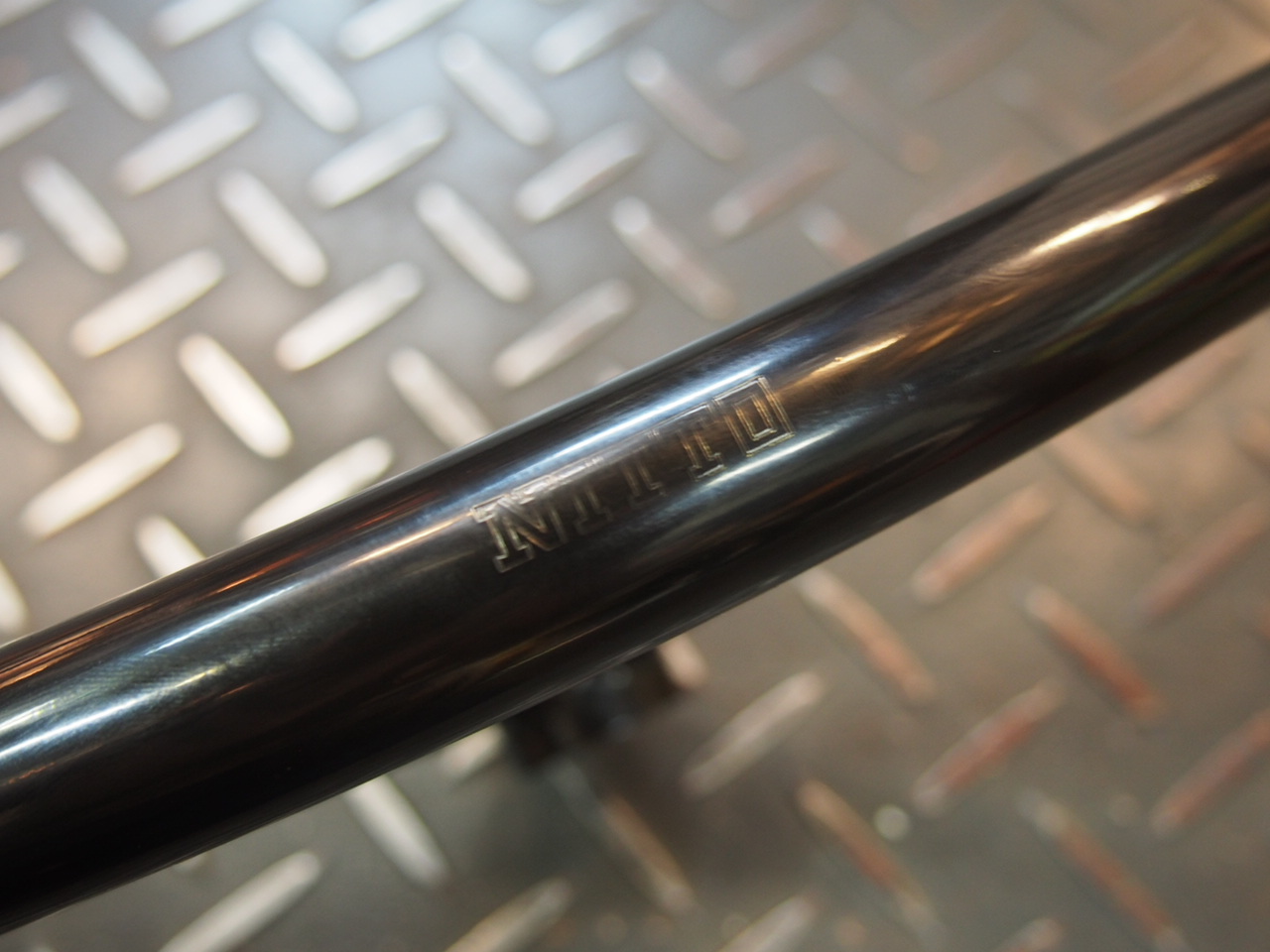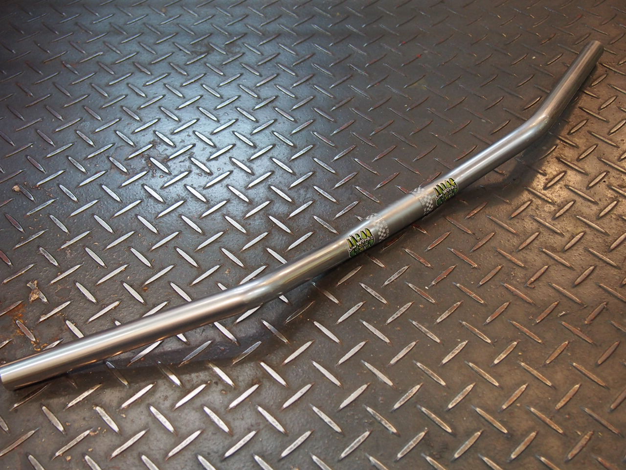 フラット部は適度にバックスイープしており、とっても普通のフラットバー。