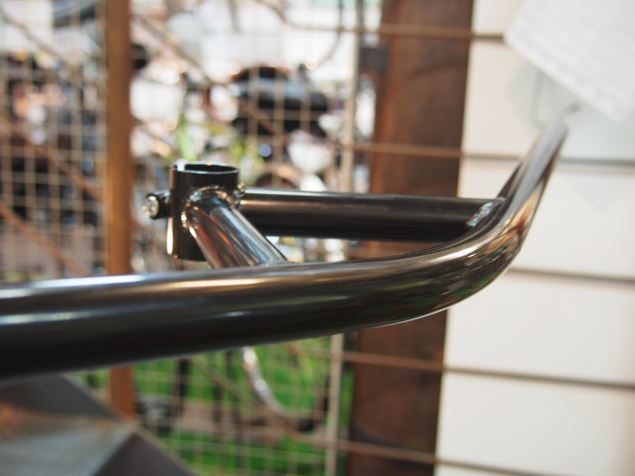ライズ、バックスイープ共に絶妙な、見て良し&握って良しな優秀ハンドル。