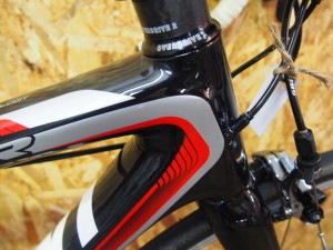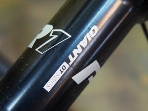 ダウンチューブは長方形に近い断面の横扁平。なのでロゴも左右ではなく上下に配されています。