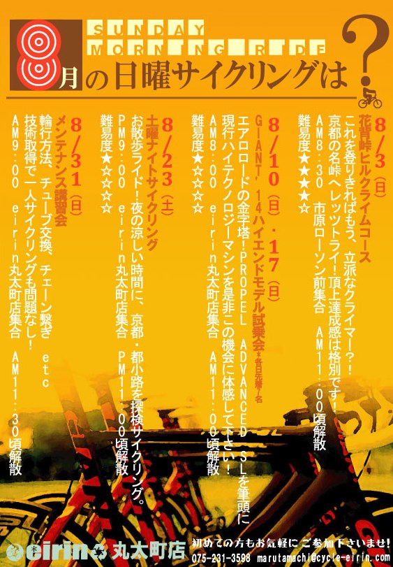 第四週目は、8/23(土)土曜ナイト”夕涼み”サイクリング