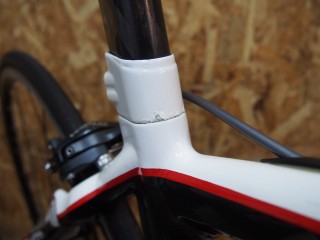 一番目立つダメージとしては、シートクランプ付近に塗装浮きがあります。