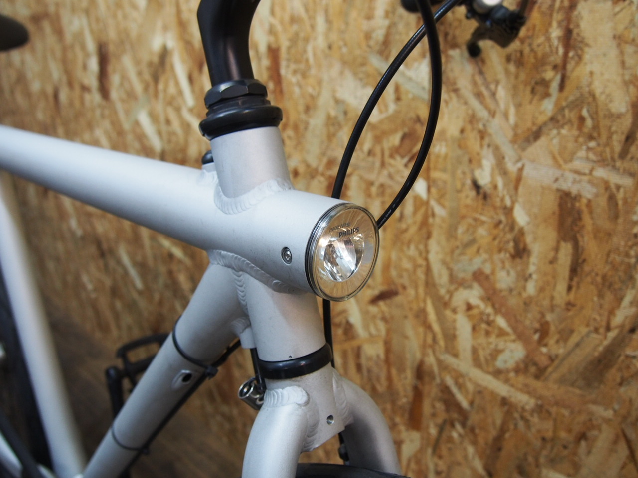 フロントハブダイナモで発電&自動点灯。(不要な時はトップチューブのスイッチで消灯可能です。)