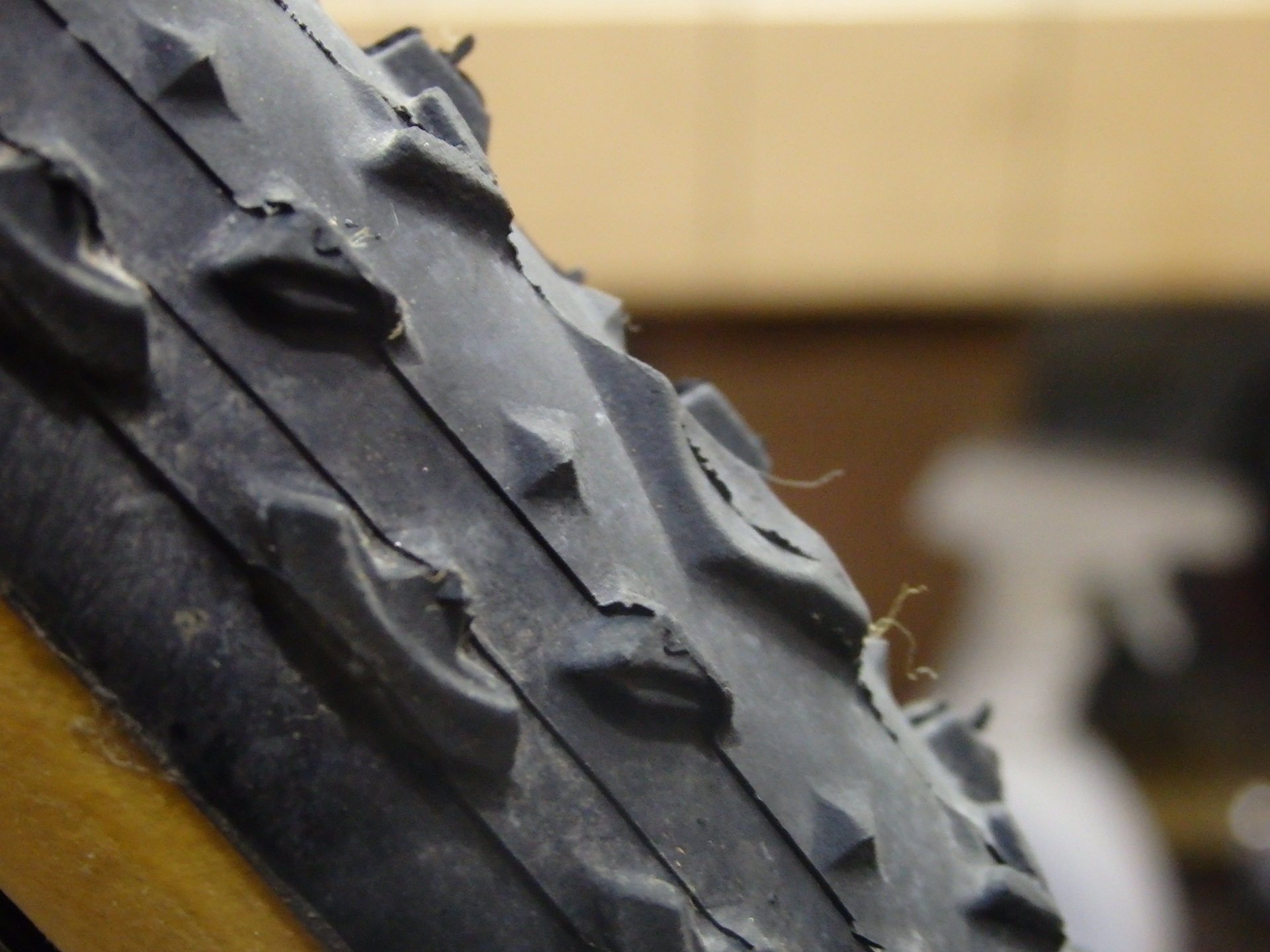 ●サイドノブ形状: 進行方向と平行に配置されたノブが、コーナリング時(車体が斜め)、バランスよく路面に食らいついてくれ、気持ちよく思ったラインがトレースできた。泥モデルのLIMUSなどよりノブ間が狭いのもそのスリップし難さに効果があるように思う。