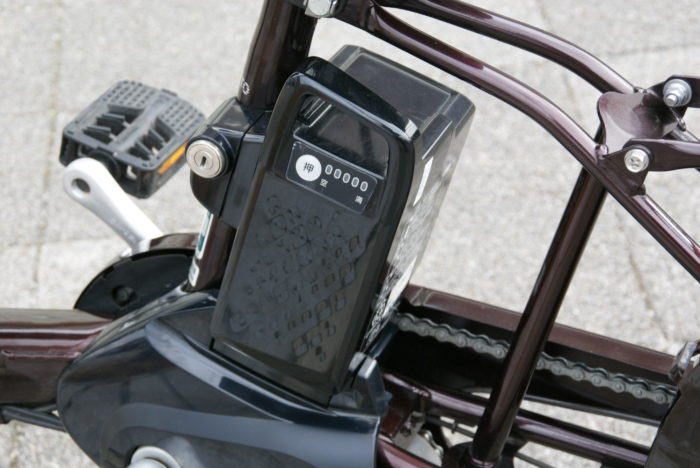 フレームはできるだけまたぐときの足に引っ掛からないように空間を広くとった一本フレームで乗るときこけないような仕組みになっています。またバッテリー容量は多いですが形が小型のものになっていますので幅広サドルを低く下げることができ小柄な方でも乗っていただく事ができます。二人乗りだと141cmの方から三人乗りだと154cmの方からご利用できます。