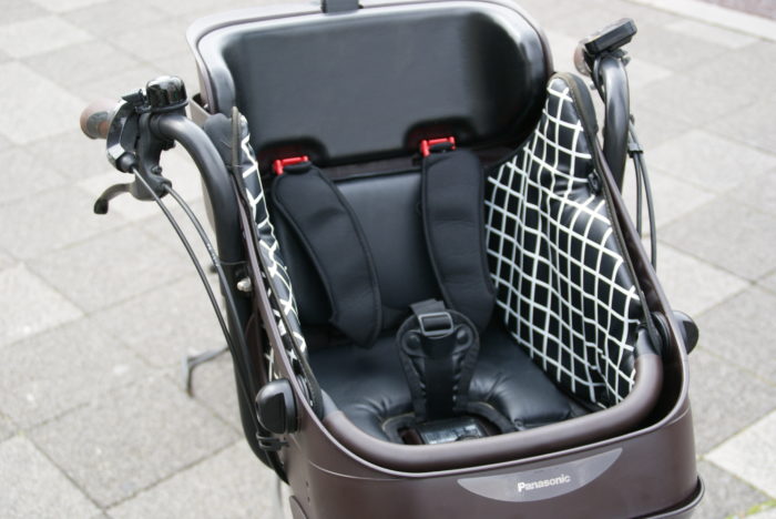 一番の特徴である前子供乗せはお子様をしっかりと包み込み転倒時などのショックからしっかりと守ってくれます。また使い勝手も良く基本片手で操作できる仕様になっています。お子様の成長に合わせサイズも調整可能です。そして乗せ降ろしの時のベルトが特徴的で下から車のベルトのようにギューンと伸ばして方に取り付ける仕様になっています。このギューンと伸ばせるところがとっても良くて季節によったお洋服のかさばりに合わせて長さを調節できるようになっています。便利ですよね☆