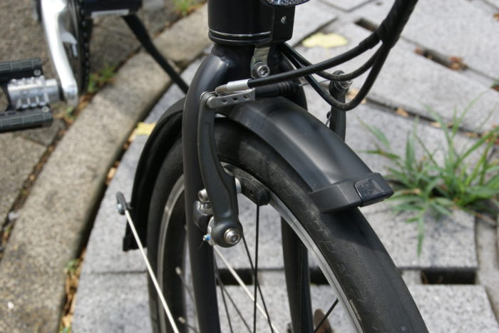 ブレーキは前後とも制動力の高いVブレーキを採用しています。意外とこのタイヤだとスピードが出るので制動力のあるブレーキは重要ですよね。デザインもフレームのクロムカラーによく合ってかっこいいです。