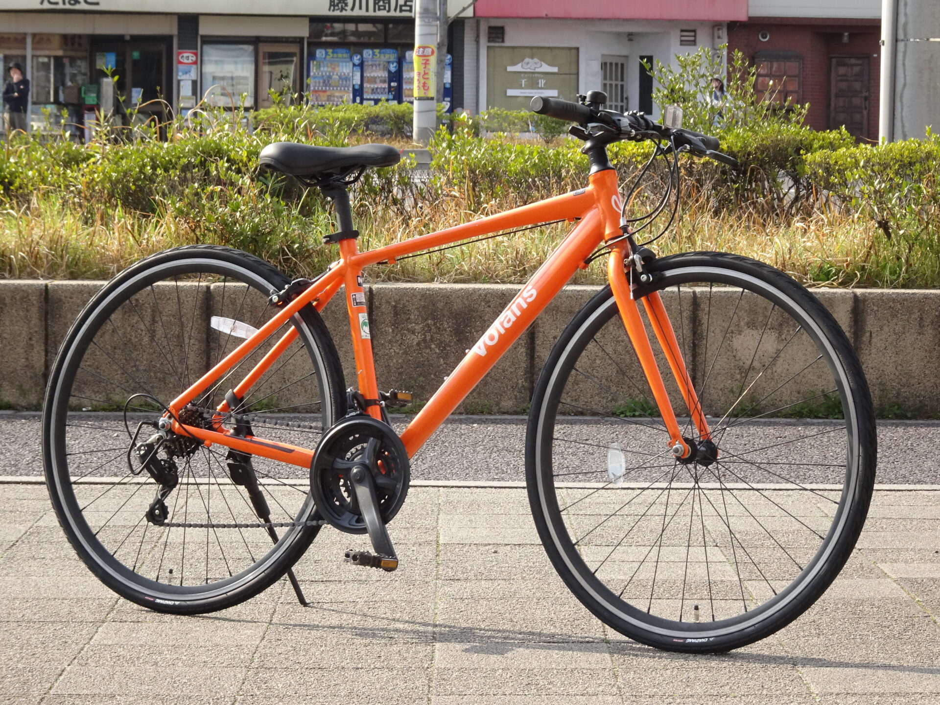 比較的安価なクロスバイク。軽量なアルミフレームに3×7段の変速を搭載しており、性能はお値段以上。