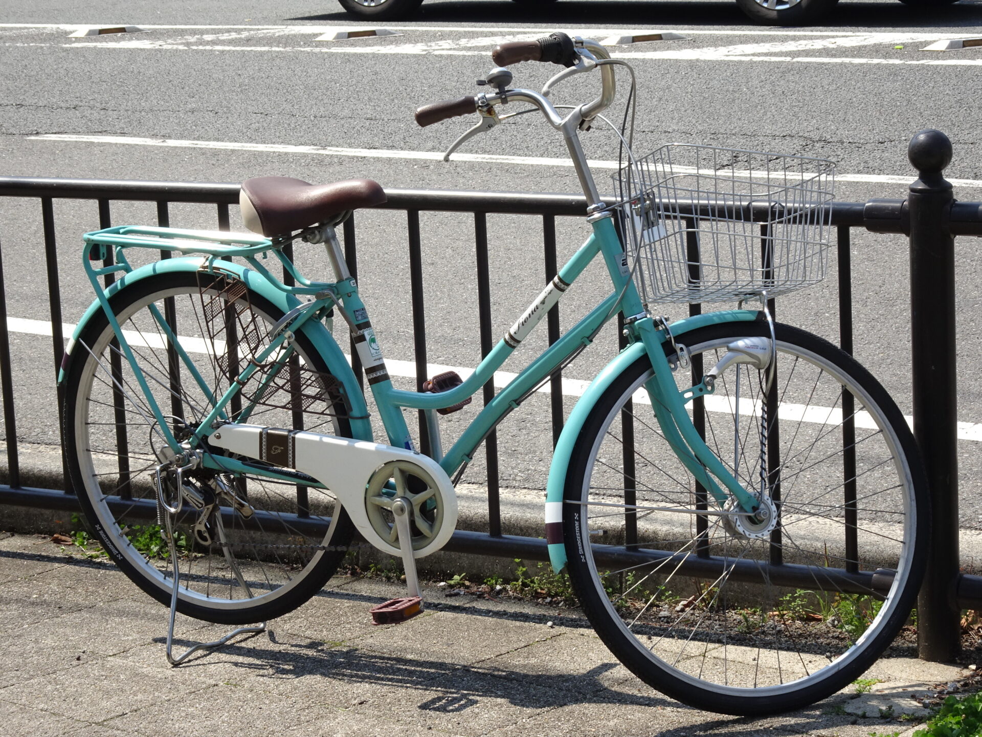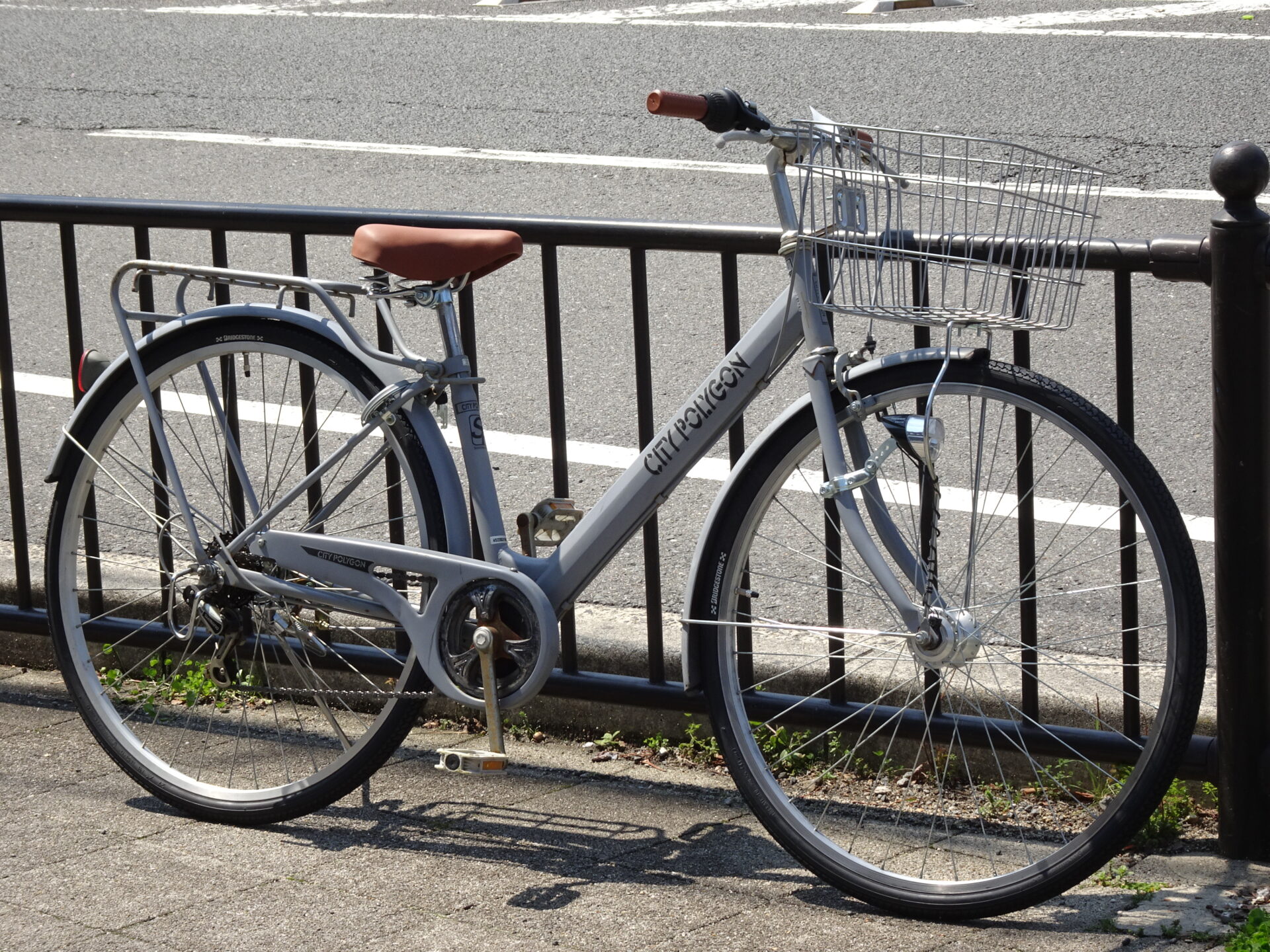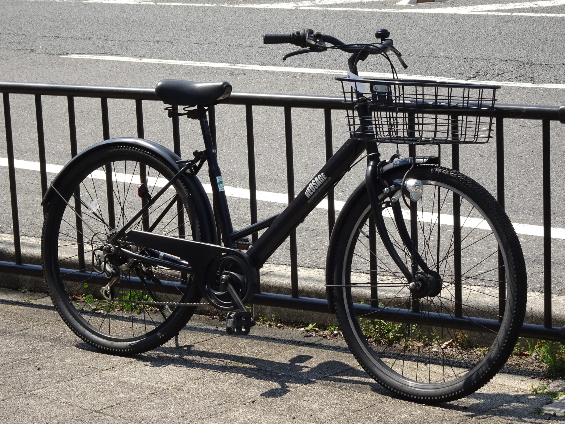 太いタイヤが特徴的なシティサイクル。横幅のあるカゴも魅力的。