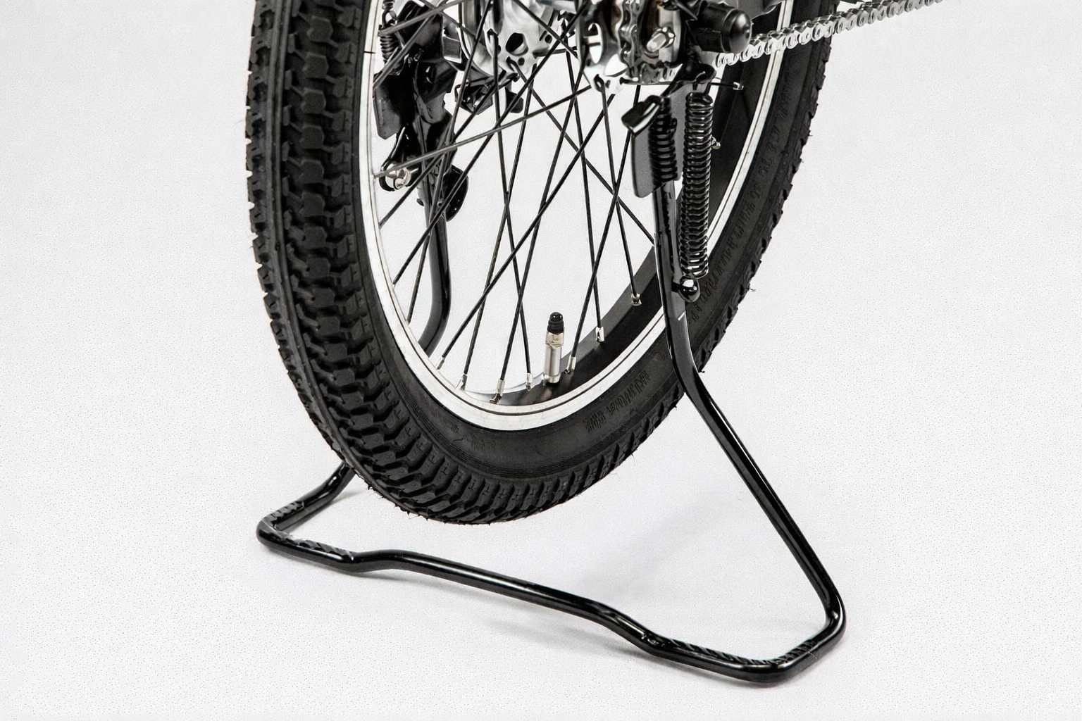 お子さまを乗せ降ろしする際に欠かせない両立スタンドも装着済み。