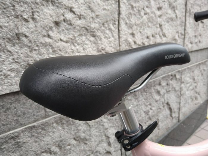 自転車の跨りやすさは勿論の事、サドルの柔らかさや完成車でドロヨケが装備されていたりと、非常に女性ファースト設計なミニベロだったからでしたね~♪このきめ細やかさとボディカラーに合わせたブランドロゴ抜き色の配色とかも人気の秘訣だったんでしょうね☆この子はボディピンク系にロゴが茶系と抜群の配色!!!今でもグッときます♪