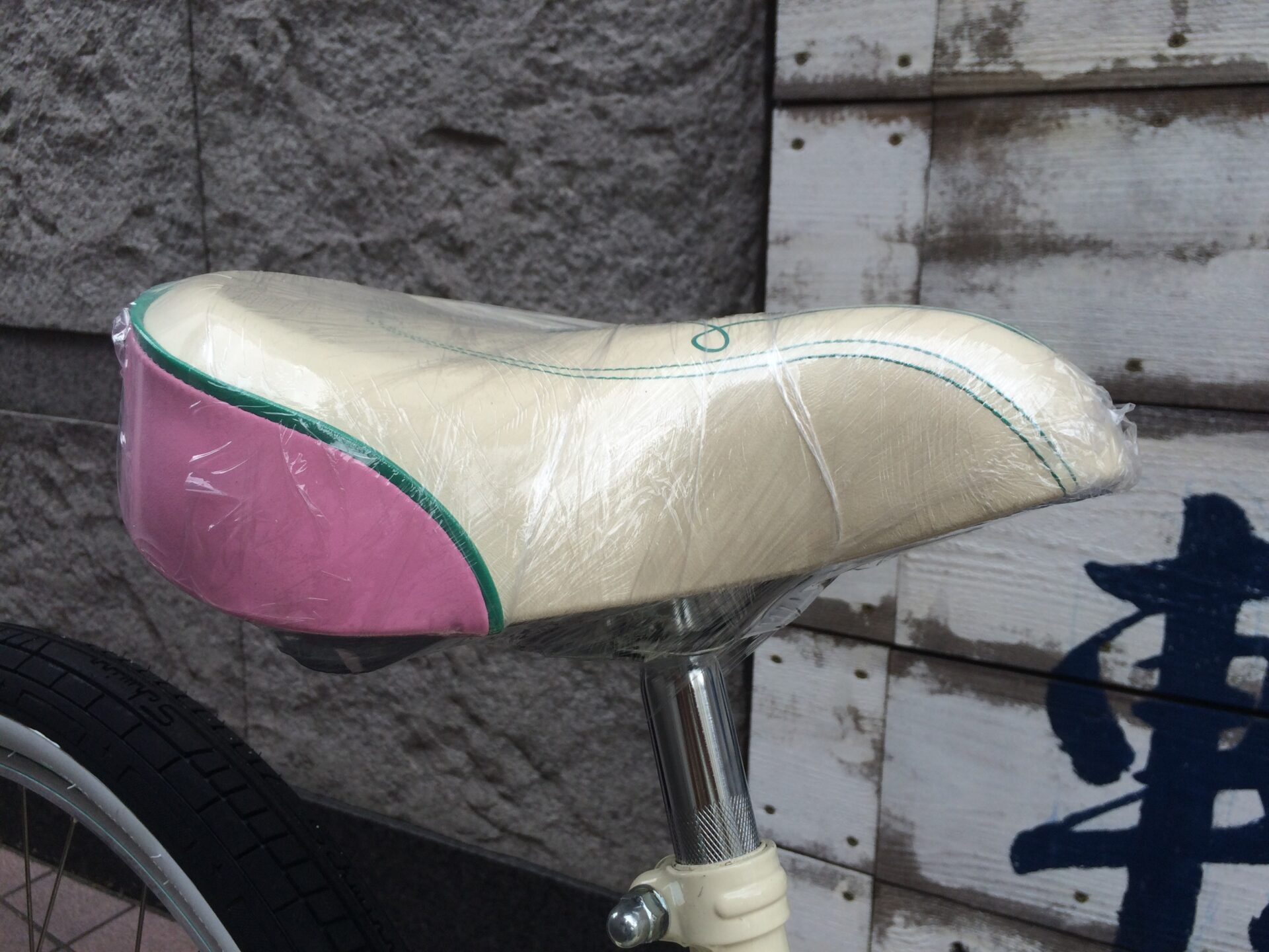 サドルは一般に付いているサドルよりも大きいのでどっかりと腰かけ座れ、ホワイトとピンクのカラーでオシャレ になっております。
