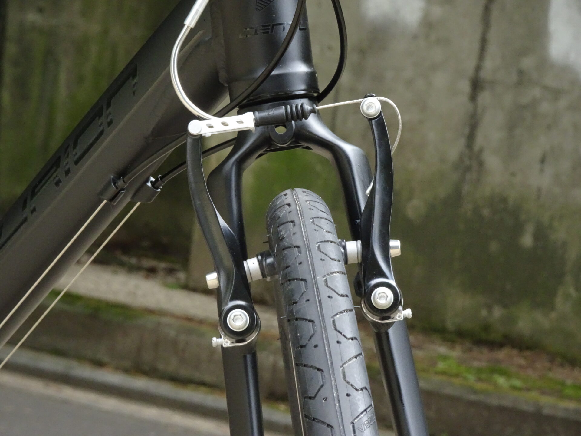 個人的にはフレームとタイヤとのクリアランスがこんなにもあるので太いブロックタイヤを入れてゴリゴリにいかついクロスバイクに仕上げるのが楽しそう。