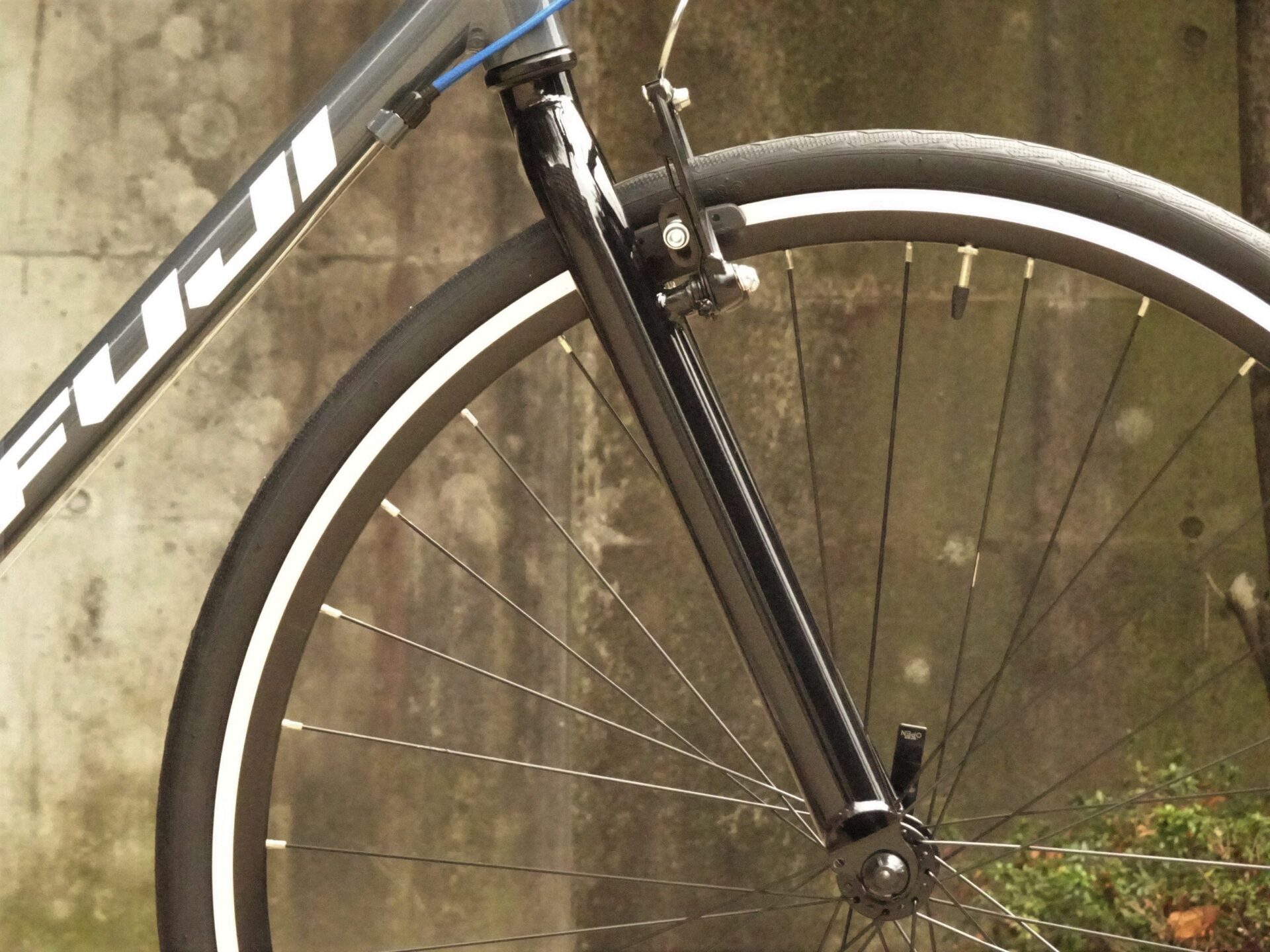 他社のベントされたフォークとは違いずぶとくまっすぐに伸びた独特な形で素材はアルミではなくクロモリを使用しています。素材の性質から振動吸収性が良いとされており、滑らかな乗り心地の要因ともいえます。