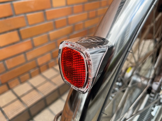車両後部にはソーラー充電タイプのテールライトが付いており、暗い時に走っていると自動でチカチカと光り始めます。